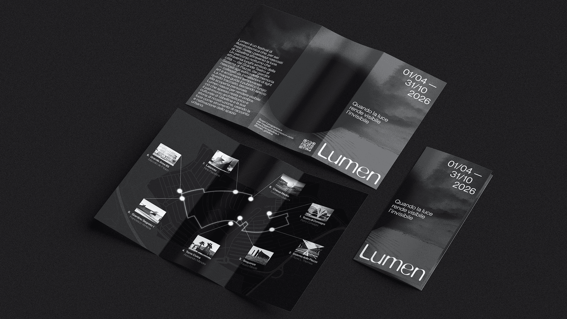 Conceived within the course "Design for the Enhancement of Cultural Heritage", led by Luciano Galimberti (Director of the ADI Design Museum, Milan), Lumen is envisioned for 2026, the year in which Gibellina will become Italy’s Capital of Contemporary Art. The project takes the form of an annual lighting festival, where light functions as a narrative and relational language capable of revealing artworks, architecture, and urban voids.