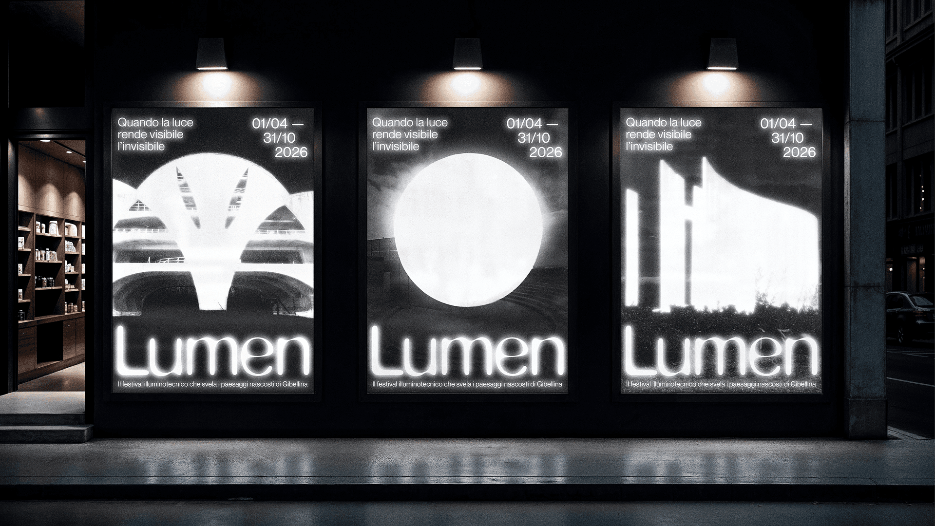 Lumen is a cultural enhancement project that explores light as a strategic medium to reactivate urban space and reinterpret contemporary artistic heritage. Developed for the city of Gibellina (Sicily), the project responds to a condition of nocturnal invisibility, where architecture, artworks, and collective identity tend to fade from perception.